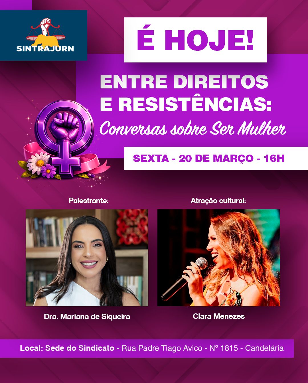 Notícias Evento do SINTRAJURN reúne servidoras em tarde de escuta, protagonismo e fortalecimento feminino Leia mais
