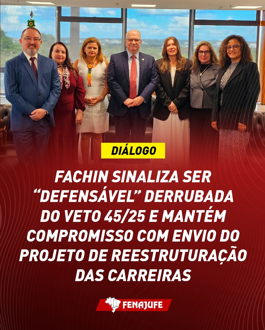 Notícias Fachin recebe Fenajufe e reforça apoio à derrubada do Veto 45 e à reestruturação das carreiras do PJU Leia mais