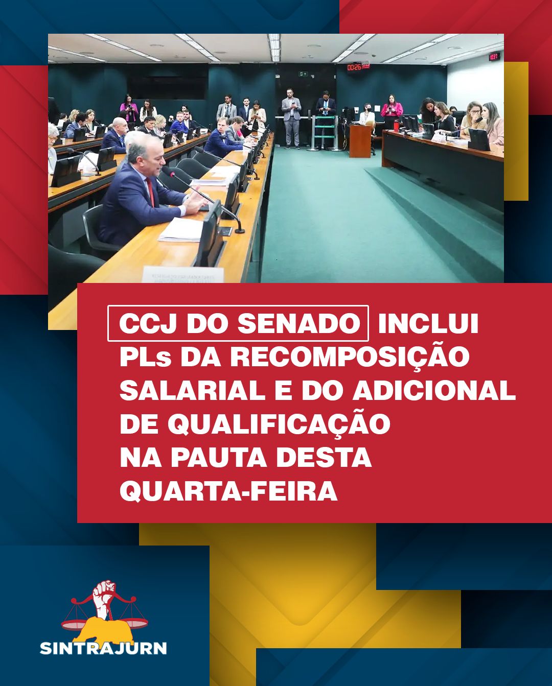 Os Projetos de Lei 4750/2025, que trata da recomposição salarial, e 3084/2025, que atualiza o Adicional de Qualificação (AQ), foram inseridos na pauta da Comissão de Constituição e Justiça (CCJ) do Senado Federal para apreciação nesta quarta-feira (26).