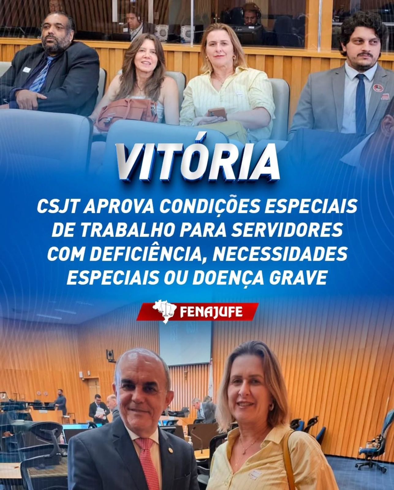 O Conselho Superior da Justiça do Trabalho (CSJT) aprovou, por unanimidade, proposta de edição de ato normativo para instituir diretrizes para a garantia de condições especiais de trabalho a magistrados(as) e servidores(as) com deficiência, necessidades especiais ou doença grave ou que sejam pais ou responsáveis por dependentes nessas situações.