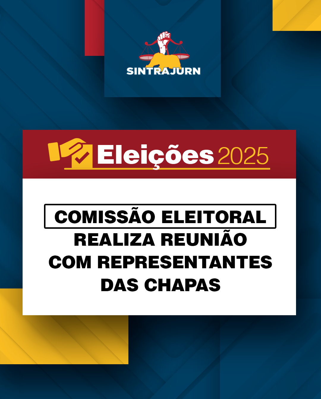 Eleição Diretoria Comissão Eleitoral homologa registros de chapas para eleições do SINTRAJURN Leia mais