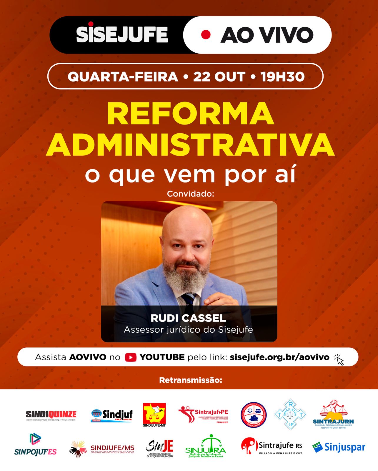 O SINTRAJURN realiza, nesta quarta-feira (22), a retransmissão da live promovida pelo Sisejufe sobre os riscos e impactos da Reforma Administrativa.